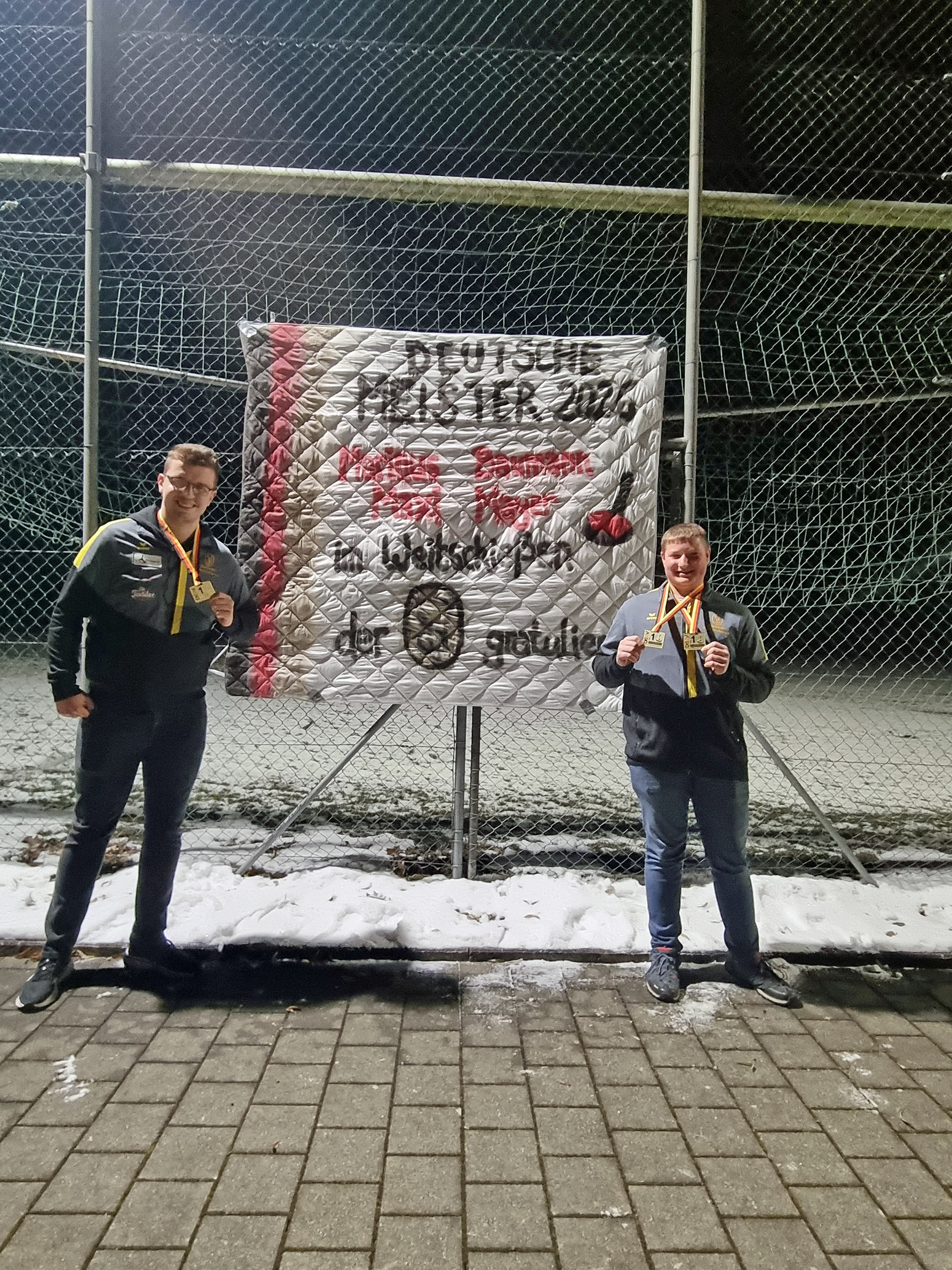 Der „Meisterstreich“ von Flensburg hallte schnell bis nach Ostermünchen. Dort ließ es sich der Verein nicht nehmen, für seine erfolgreichen Stockschützen kurzerhand eine spontane Meisterfeier zu organisieren. Bereits auf der Vereinsanlage kündigten Plakate das besondere Ereignis an.
